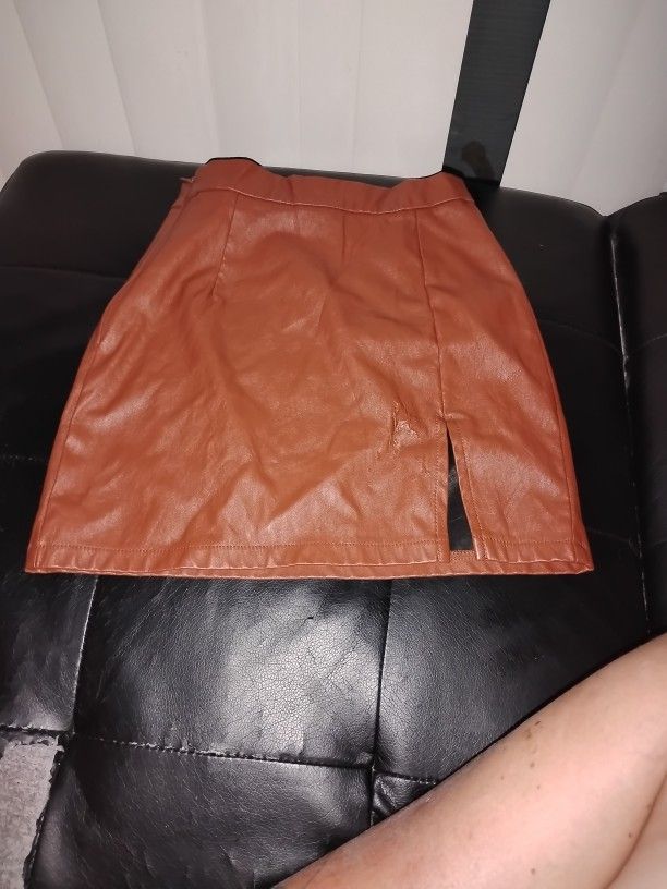 New shein real leather skirt, size xs, brown. Come get this beautiful skirt, will make a great gift