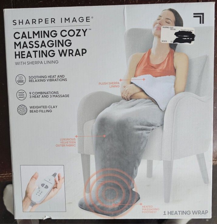 BRAND NEW IN BOX!!! (On Amazon $60) It is a luxurious cozy blanket you wrap yourself in that has a HEATED MASSAGING FOOT REST at the bottom!!! Pure warmth with soothing massage!
