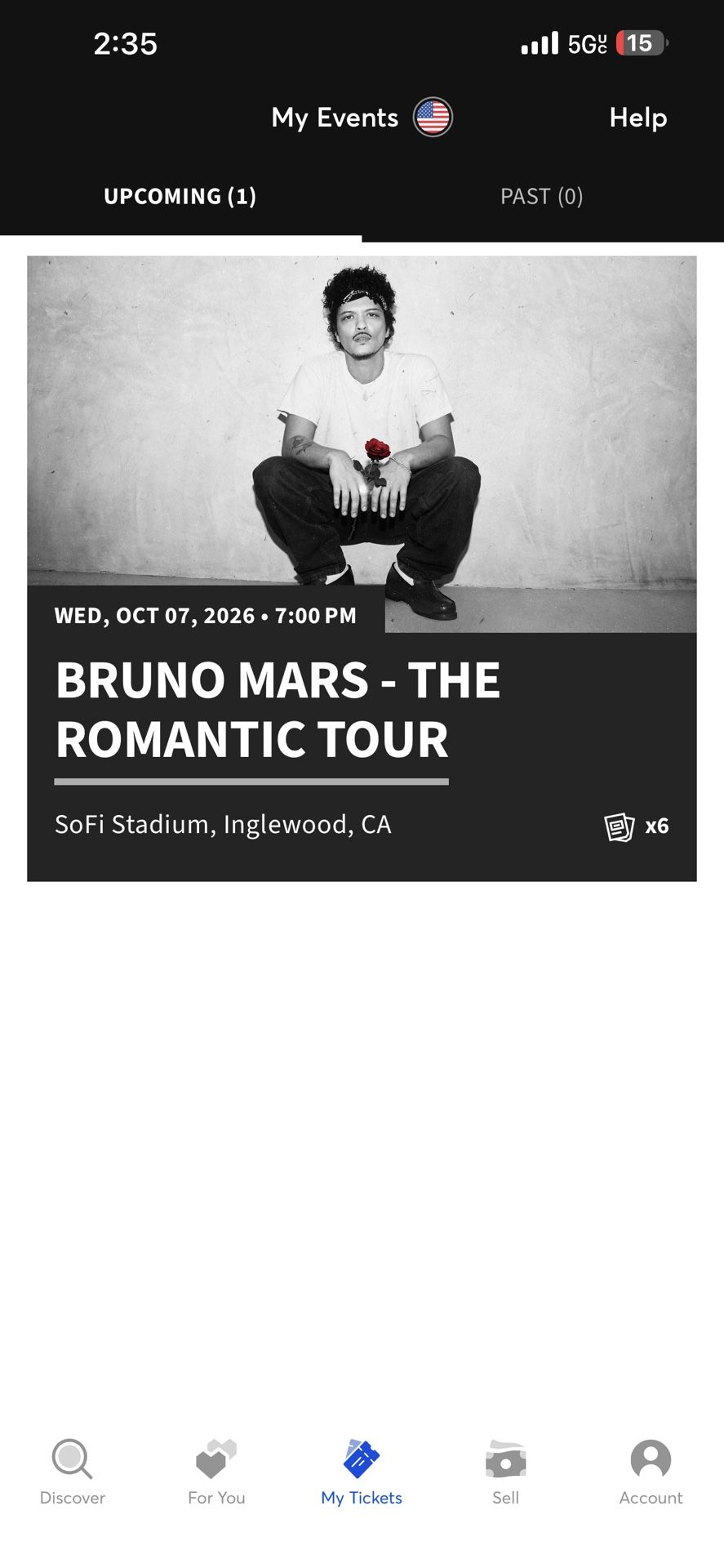 Tickets for Bruno mars romantic tour 10/07 4 tickets available Must take either 2 or 4 no singles $400 each ticket Buy with confidence from a trusted seller Message me with any questions
