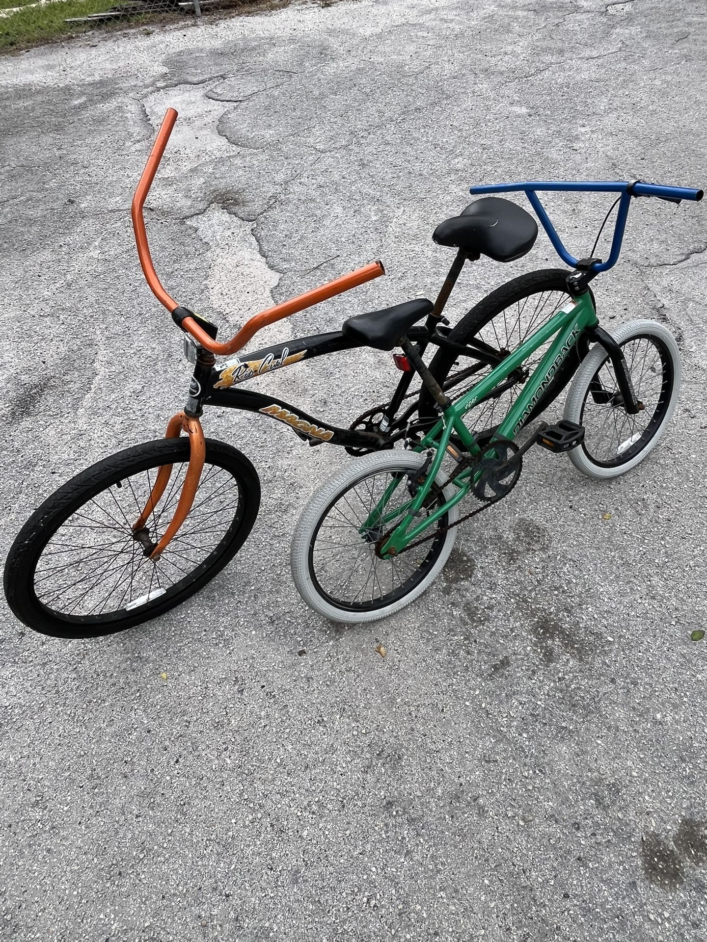 Beach cruiser has new crankshaft bearings and tubes. Kids bike has new tires and tubes with extra set of tires that are like new. Both are functional. Buy together or separate. Two bikes for $150 obo
