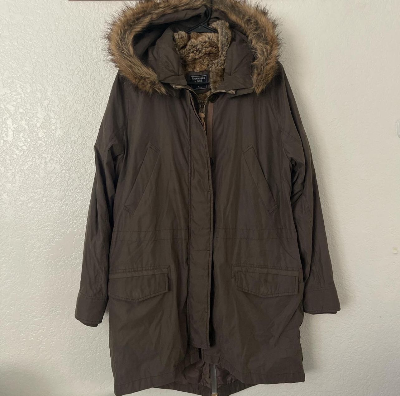 Brown Faux Fur Hooded Parka Coat