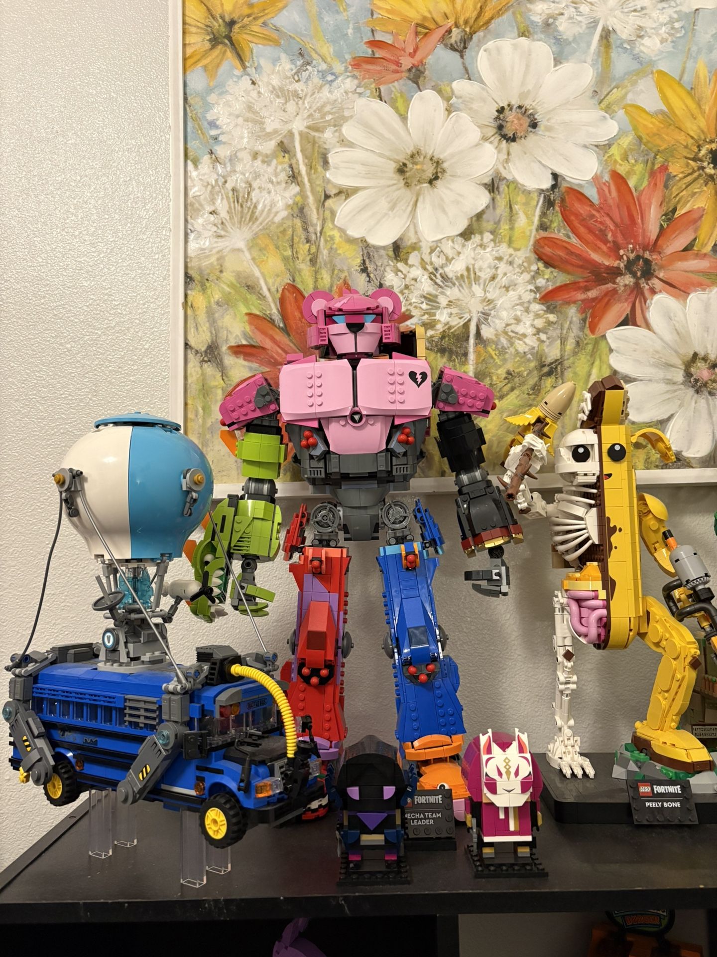New Year means new Lego… so I gotta make room. I have the entire Lego Fortnite line (so far) and everything is just built and then displayed, so everything is complete and should be in good condition, just probably dusty lol. I don’t have any boxes, but I do have instructions for all of them. Sets included: - Mecha Team Leader - Peely Bone - Battlebus - Klombo -DurrBurger Restaurant - Llama - DurrBurger Mascot - Peely and Sparkplugs camp - Adventure Peely and Cuddleteam leader brickheadz - Drift and Raven Brickheadz