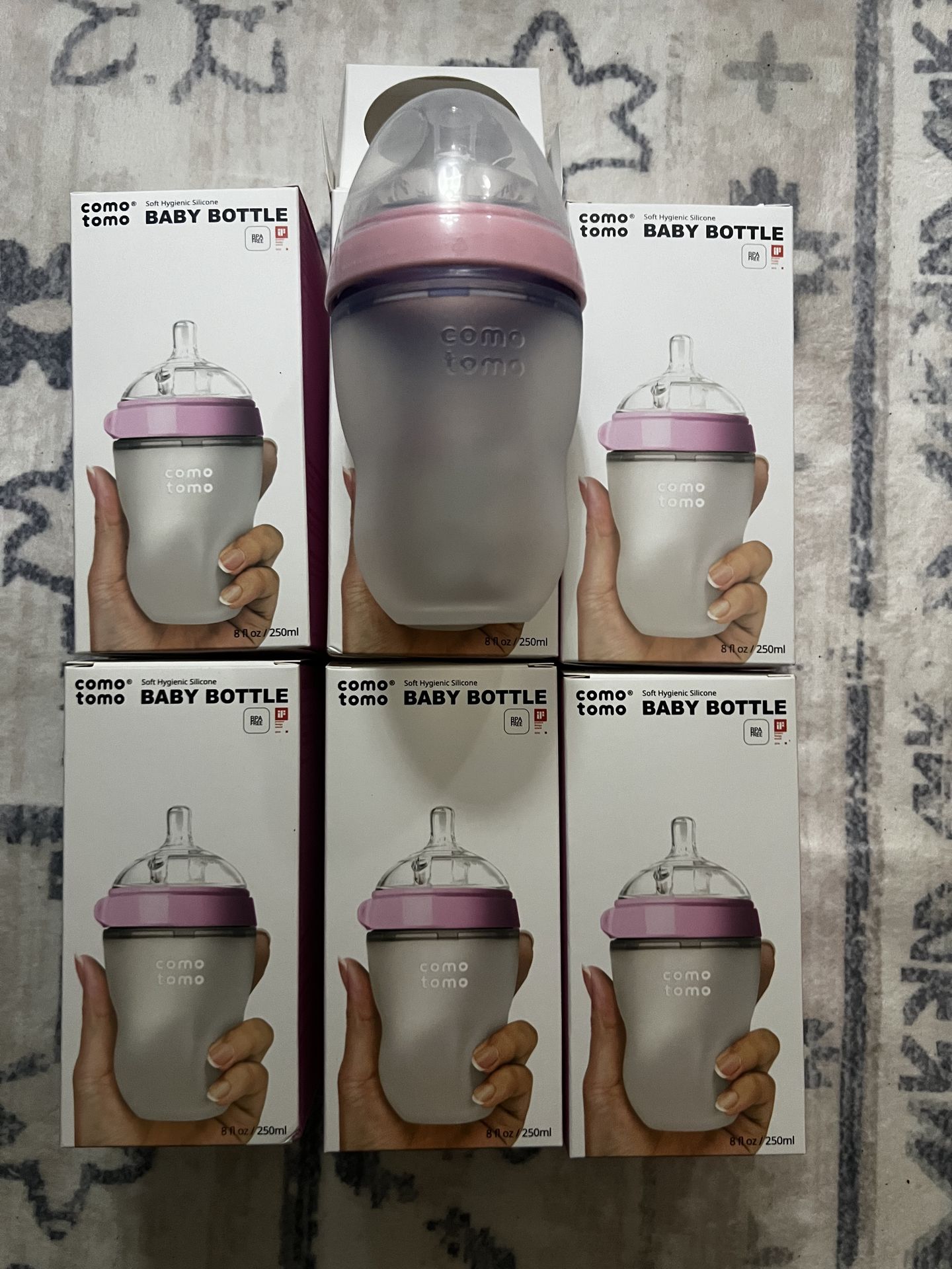 BRAND NEW COMO TOMO BABY BOTTLES ALL NEW ONLY OPENED ONE FOR THE PICTURE 8oz/250ml. Soft silicone All pink