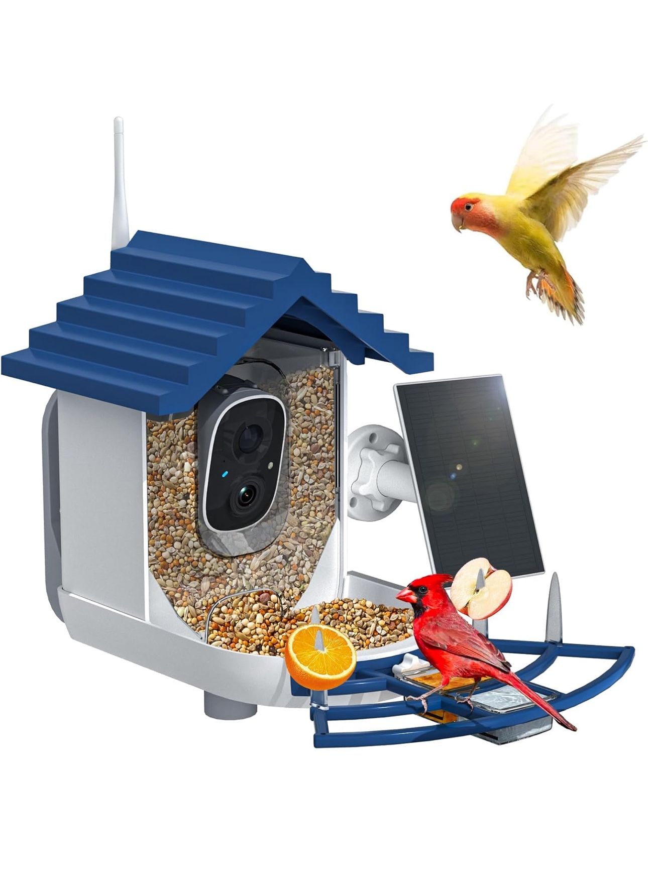 Smart Bird Feeder with Camera Solar Powered & AI Bi rd Identification, 2.4Ghz WiFi Bird feeders for Outdoors, 2K Live Video, Nstant Arrival Alerts - Best Gifts for Bi rd Lovers(Indigo Blue)