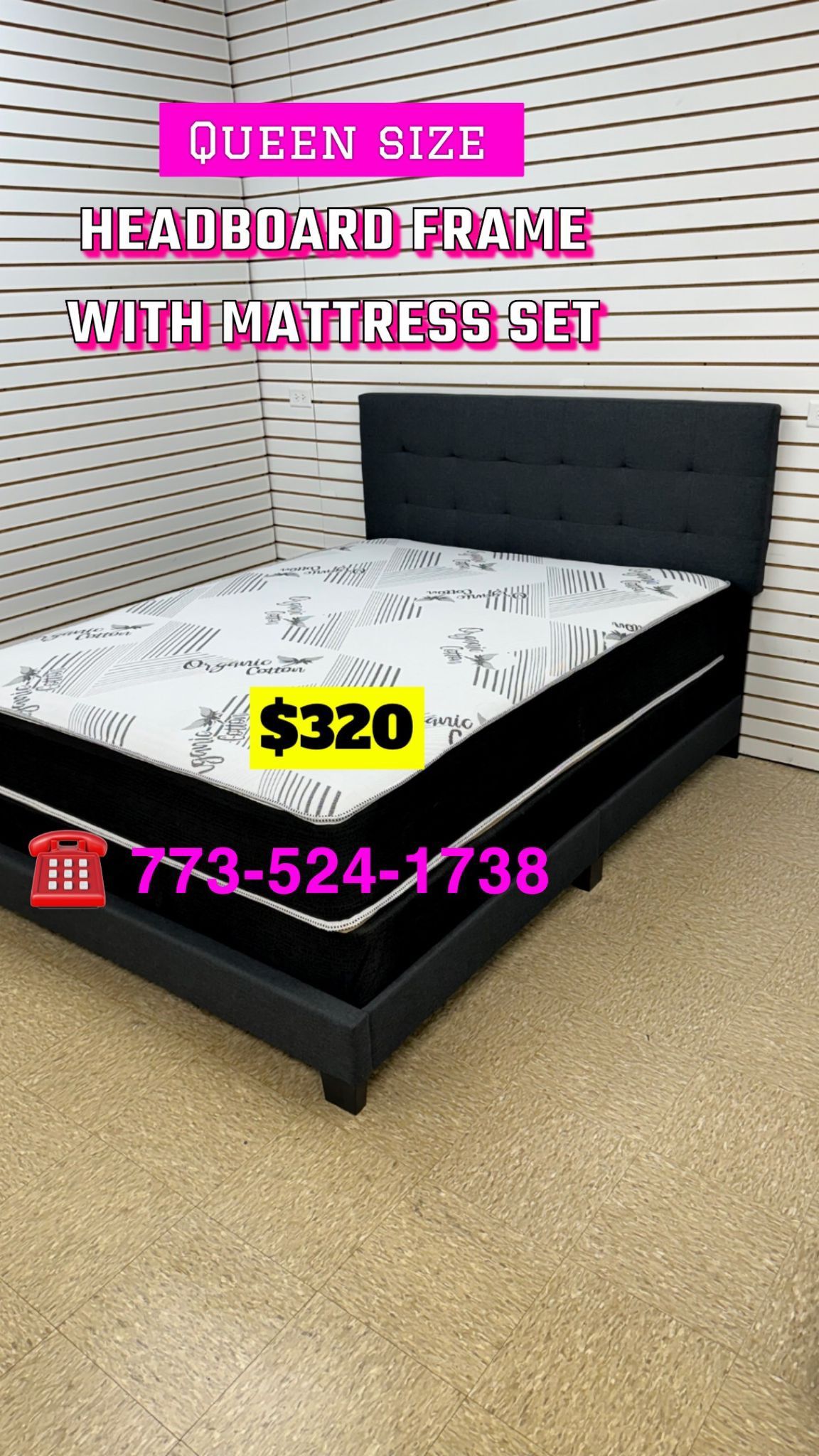 Queen Size Bed Headboard Frame Mattress And Box Spring All Included Brand New Furniture Yes We Deliver