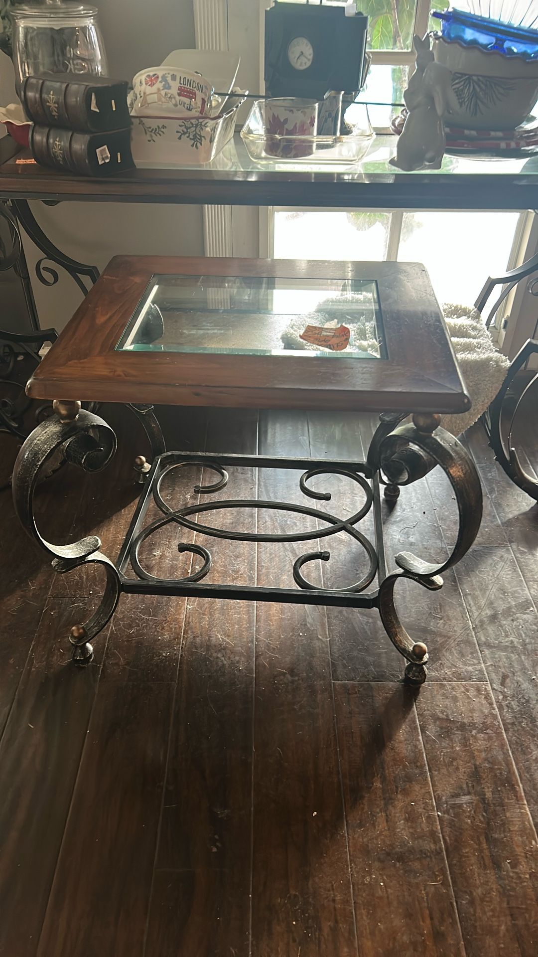 Coffee table & 2 side tables heaven glass wood and black metal. All 3 for $150 Much more furniture available Must go now