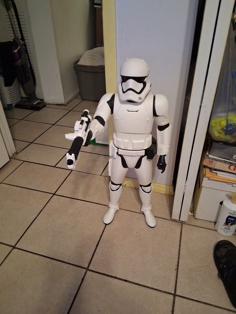 Brand new large scale storm trooper...Figure is dead mint ...comes with blaster...it's about 30 inches tall ...no scratches or dings ...stands perfectly on its own...A must for diehard fans ..tough piece to find in this condition..This item sells for up to 100 loose ..