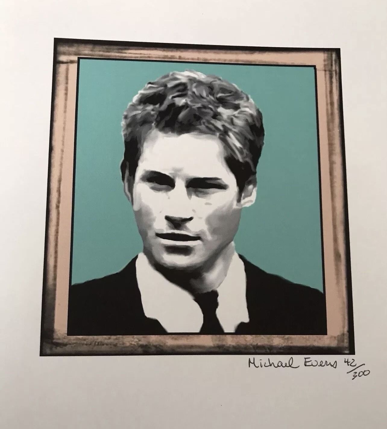 Prince Harry RARE Famous Artist Signed Ink Print. Signed Numbered.