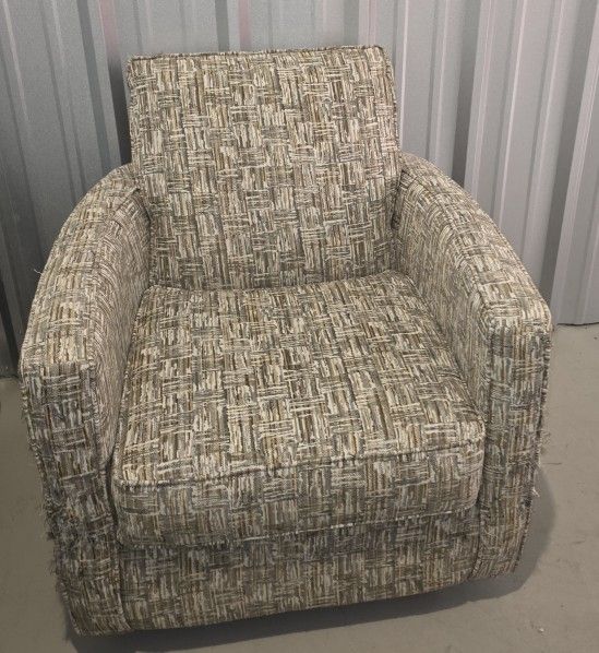 Side and back of the chair have strings from cat scratches that are hard to see in the picture due to the design. The chair rocks glides and swivels perfectly.
