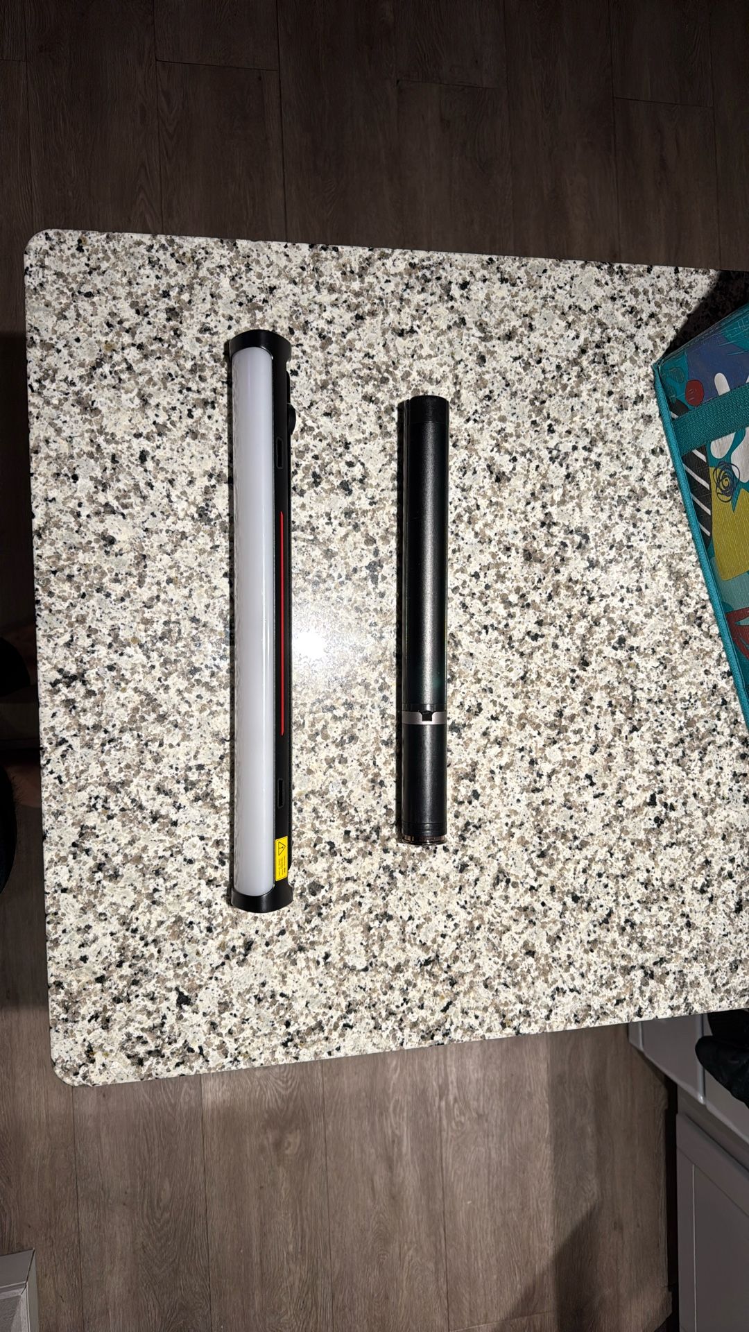 No battery handle Needs external power source. Powered via USB-C port Complimentary 5’ light stand 1/4 - 20 bolt for screw on mounting of light and other lighting devices