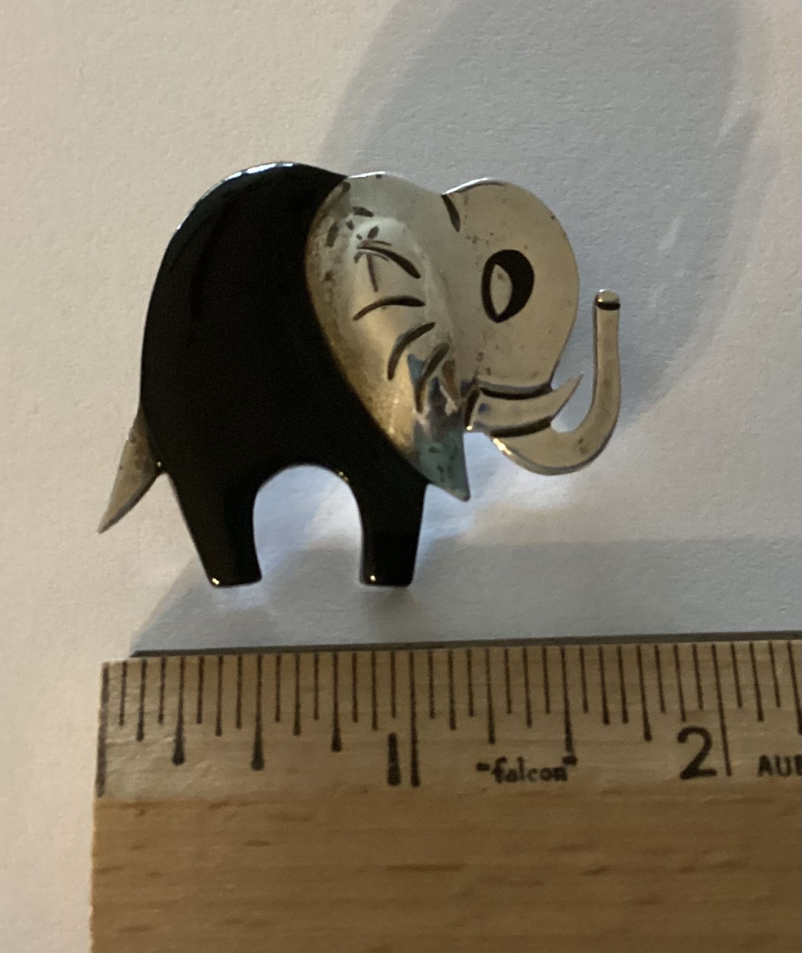 Taxco 925 MCM Pin Or Brooch Of Silver And Black Onyx Elephant