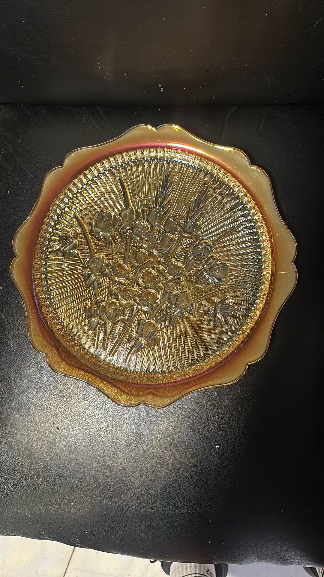 Jeannette Glass "Iris and Herringbone" carnival glass platter