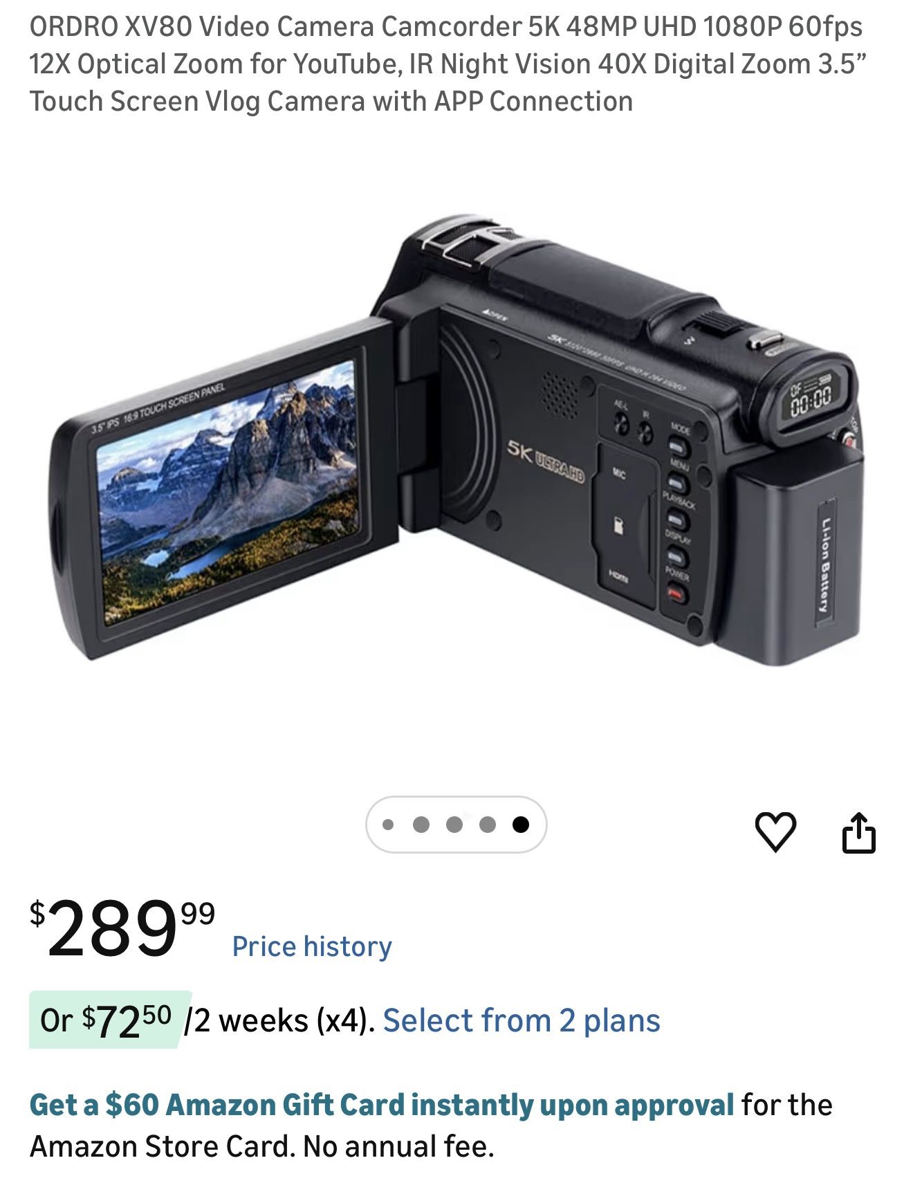 ORDRO XV80 Video Camera Camcorder 5K 48MP UHD 1080P 60fps 12X Optical Zoom for YouTube, IR Night Vision 40X Digital Zoom 3.5” Touch Screen Vlog Camera with APP Connection. brand new. (Memory card included.)