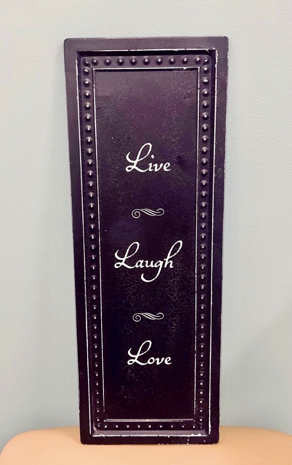 Distressed metal wall decor: Live, Laugh, Love. Perfect for your home or office. Measurements provided in the pictures. Local pickup available.