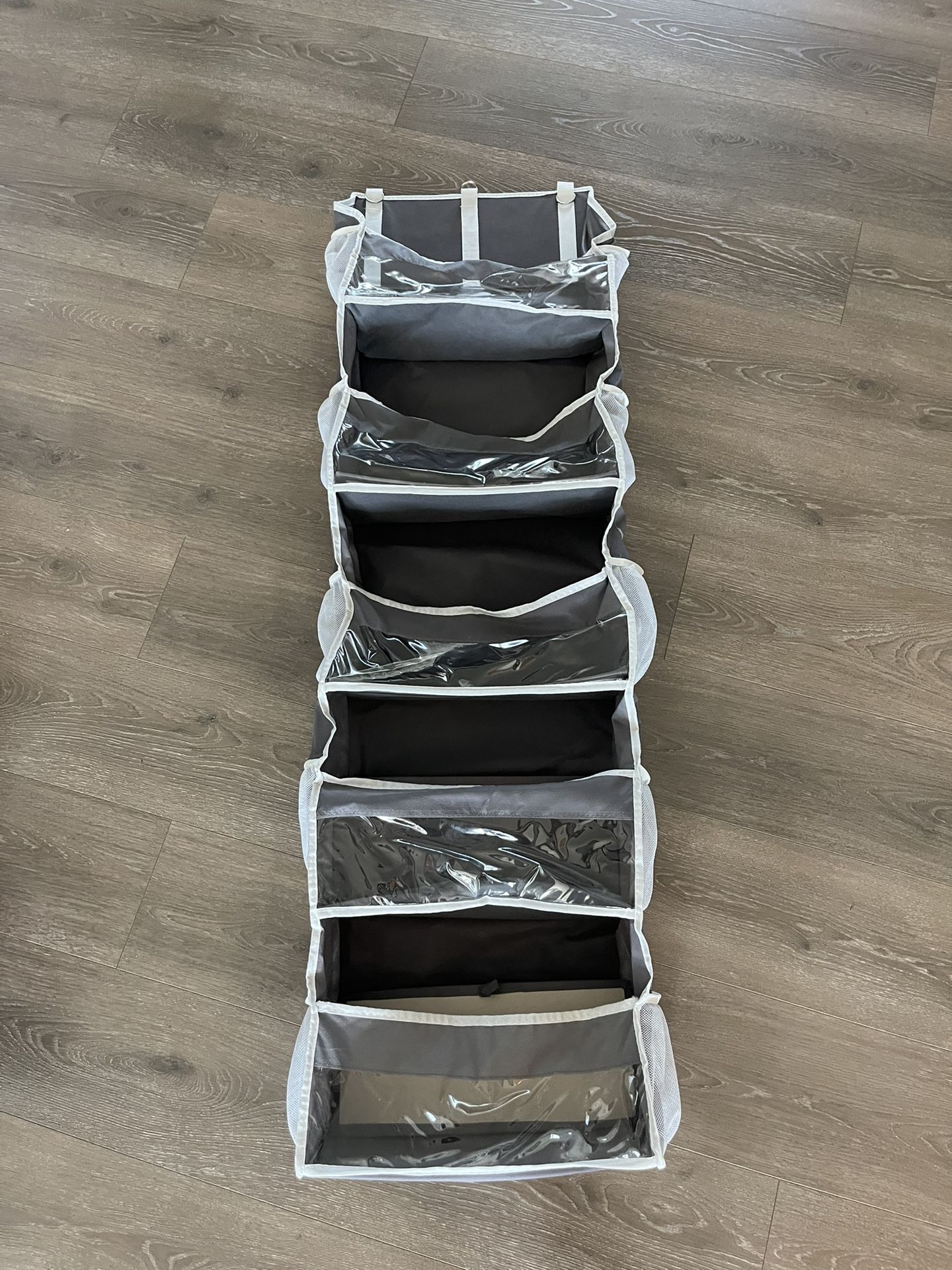 Amazon Basics 6-Tier Hanging Closet Shelf Organizer With Pockets, 8.5" D x 12" W x 9" H, Grey