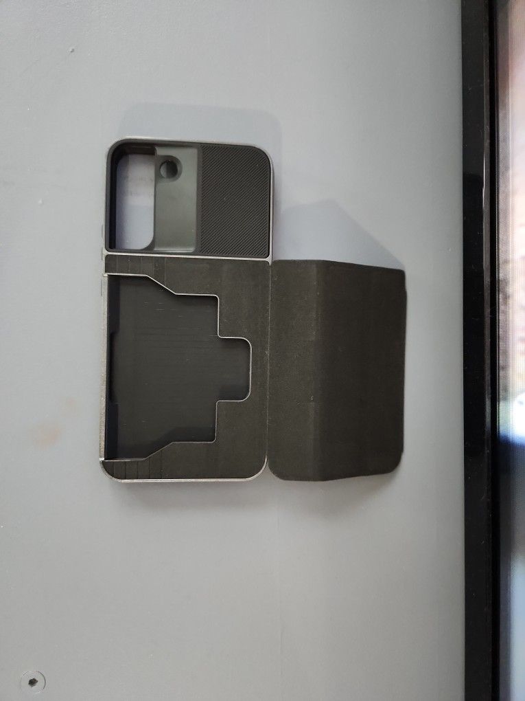 Slightly used Samsung S22 plus card holder phone case, measures 6.5 inches x 3 inches, black with silver