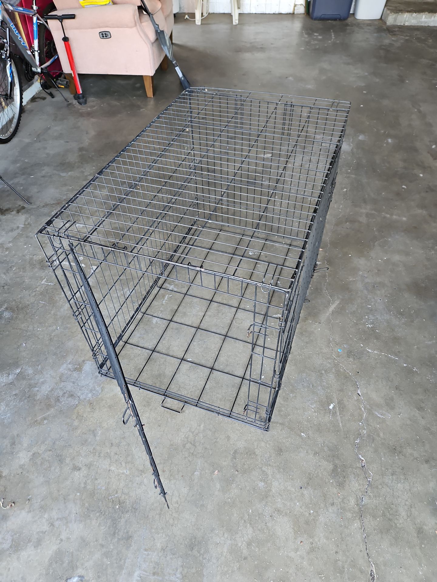 Big dog cage with 2 doors. Do not have platform. Height 70" Width 27" Length 42"
