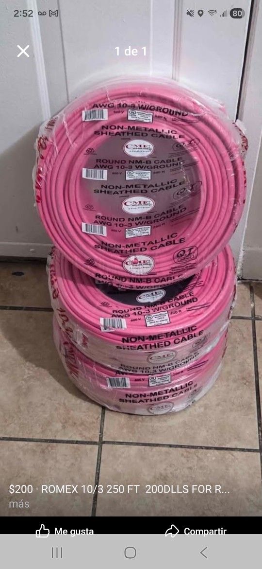 Romex 10/3 ,,250 Fts 200 Dls For Roll