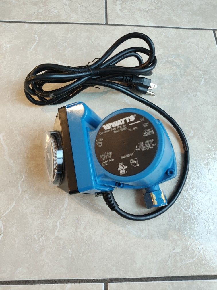 Like new tested working Watts circulation pump model # 500800 in working condition 115 volts 60 hz. For indoor use only see pictures, retail price $ 268.00 plus taxes