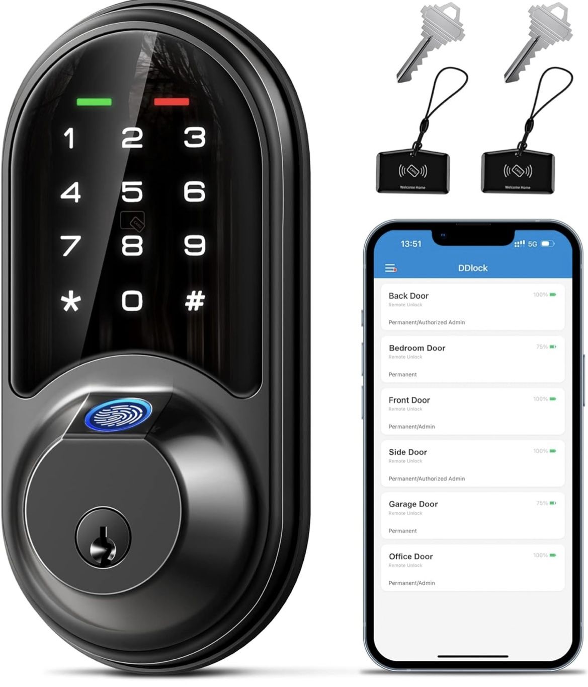 FIRM PRICE! Retail Price-$, Open Box Item, If Listing Is Up, It’s Available! 📦 New deals posted regularly — check my profile for more items. Veise RZ07 Fingerprint Smart Lock, 7-in-1 Smart Locks for Front Door, Keyless Entry Door Lock with App Control, Biometric Electronic Touchscreen Keypad Deadbolt, Matte Black