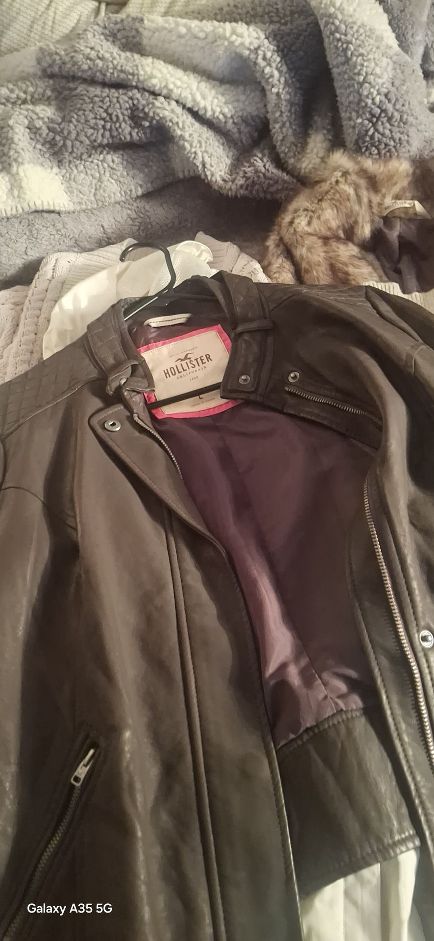 Abercrombie cream cardigan. Abercrombie cream vneck sweater. Holister oatmeal sweater. Grey Holister cardigan. Brown leather Holister coat. Brown Holister fur cropped coat. Red Uggs zip up hoodie. White and grey Helly Hensen windbreaker. Grey "camp flog i see ghost" Yeezy hoodie. Black Harley Davidson thermal. Sizes Med/Large Pet free Smoke free Stain free 7th st exit off of 101 Total of 9 items