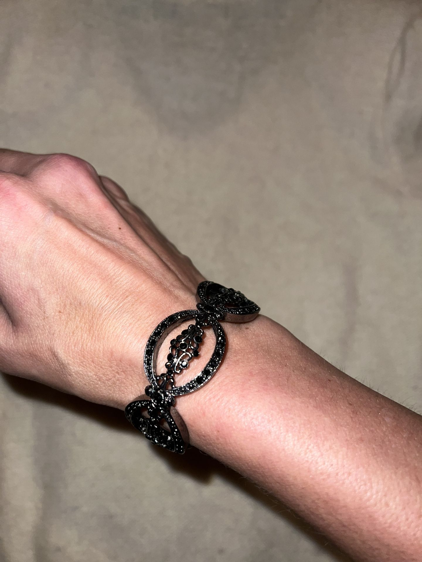 Vintage Black Beaded Faceted Silver Stretch Cuff Fashion Bracelet