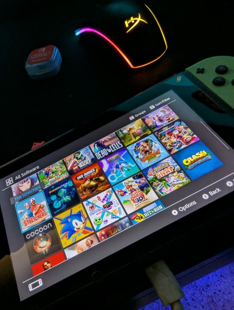 Original switch with custom firmware. Screen protector, comes with everything and portable charger