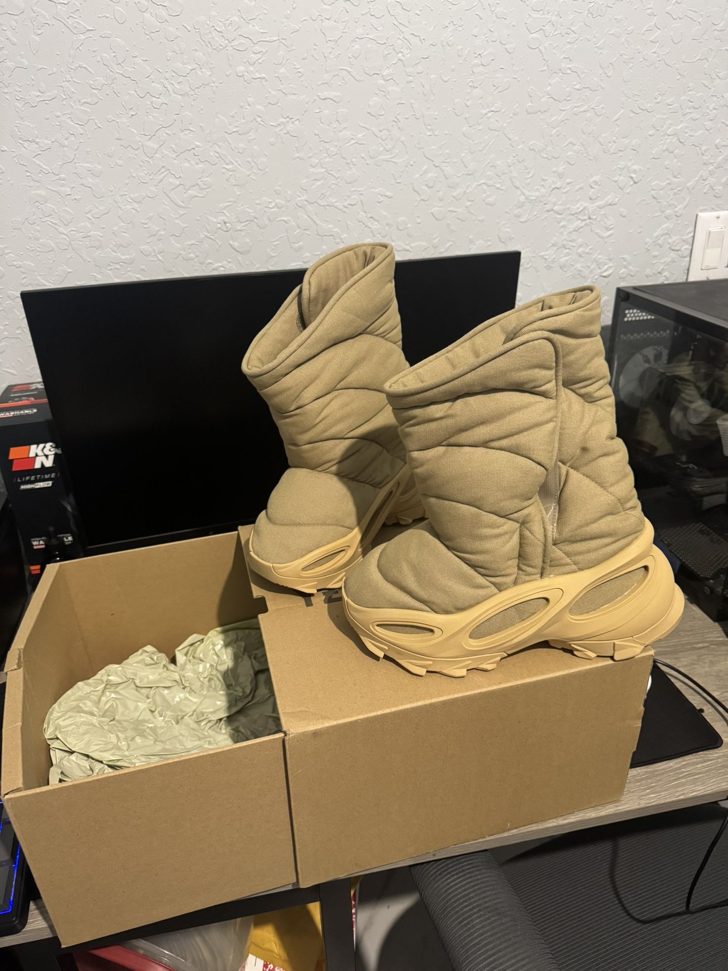 Yeezy boots size 7M Was suppose to wear these for my trip to new York but didn’t end up going so worn once to the movies. They just been sitting under my bed for almost a year. Talk to me price negotiable but no lowballs