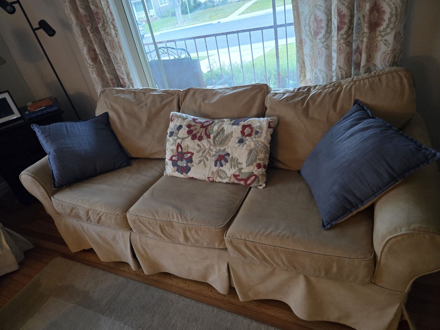 -Removable, washable covers - very solid frames (Pottery Barn quality) - comfortable deep seating - neutral color works with many styles - normal wear from use but still in good condition - Sofa and Love Seat available separately, discount if taking both - both: $250 - sofa only: $175 - loveseat only: $125