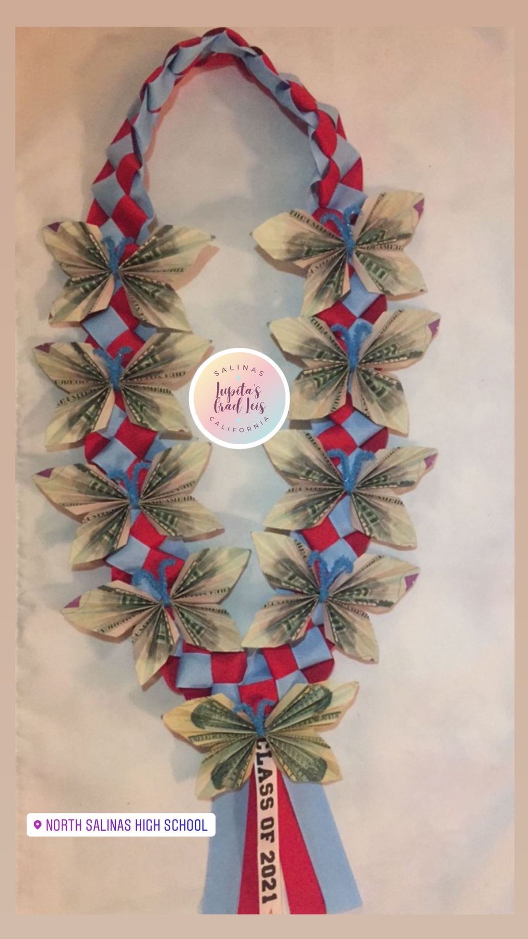 Graduation leis only by order. Every order requires 50% deposit to secure your order. Prices are different depending on the design and money you want to put on it. Please send me a direct message for more info. PS: I don’t have already made leis, everything is based by order; there is a rush fee for orders that are needed overnight or the same day. Please read the terms and conditions when placing an order. Prices subject to change. I’m in Salinas, Ca; and also ship out within the United States 🇺🇸