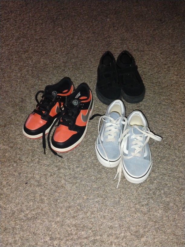 Nike dunks(orange) almost brand new only warren like two weeks Girl Vans (blue) still in good shape Boy Vans(black) still in good condition