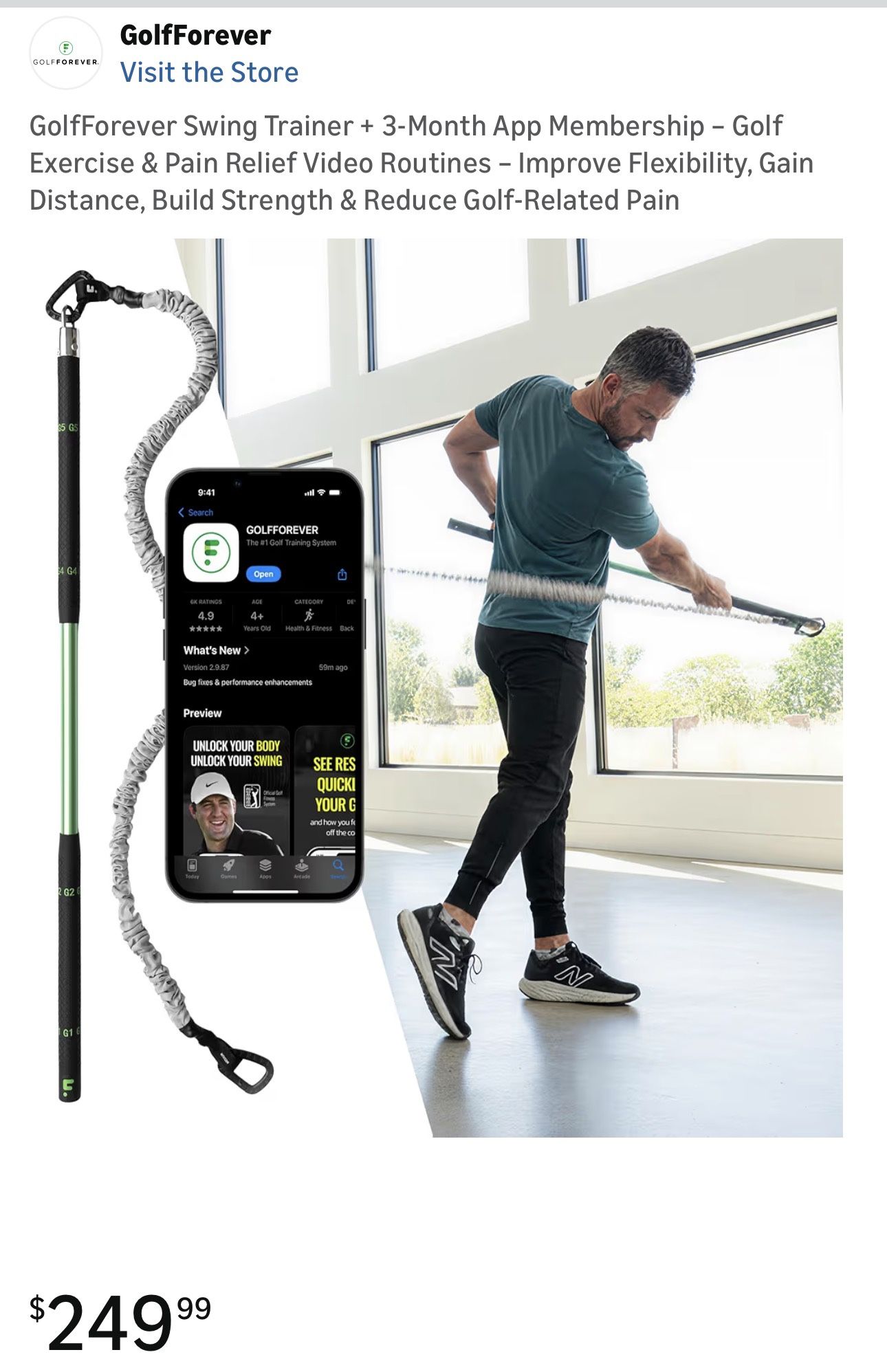 This is brand new, still in the box, and is selling on Amazon for $250 plus tax, totaling $276. I am pricing this to sell! About this item VIDEO-BASED GOLF TRAINING | 3-MONTH APP MEMBERSHIP — Download the 4.9 App Store-rated GolfForever app to move better, play your best, and avoid pain. Designed for any age or skill level, personalized for YOU. 3-IN-1 ASYMMETRICAL RESISTANCE TRAINING BAR SYSTEM — Featured equipment used in the app to improve mobility, rotational power, and swing movement patterns. Learn from the same world-class doctors, coaches, and trainers trusted by Scottie Scheffler and tour professionals worldwide. MULTIFUNCTIONAL EQUIPMENT OPTIONS — Perform hundreds of rotational movements with the Asymmetrical Resistance Training Bar, warm up safely with the Swing-Weighted Heavy Club (Green Ball ~2.5x heavier than driver; Gray Ball for overload), or use the resistance bands with interchangeable handles for stretching and mobility routines. EASY-TO-USE APP & EQUIPMENT — Stream guided routines to your device or TV, right at home, in as little as 15 minutes per session. No setup required—just tap and train. PERSONALIZED PLANS FOR EVERY GOLFER — Never guess what to do. Whether you’re older, younger, competitive, or simply looking to avoid aches and pains, your plan adapts to your needs and evolves with you. WARMUPS, FLEXIBILITY & LASTING RESULTS — Unlock key muscles, increase range of motion, and add swing speed. Thousands of golfers have improved their game, ended pain, gained energy, and feel better in everyday life.