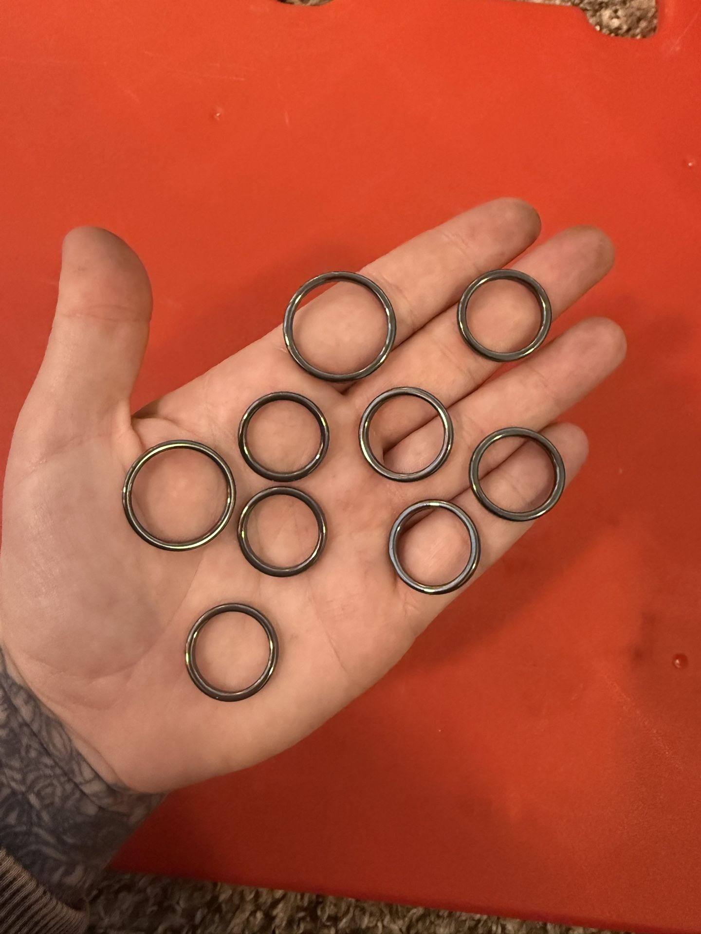 Lot of multiple sizes of hematite rings (9 total)