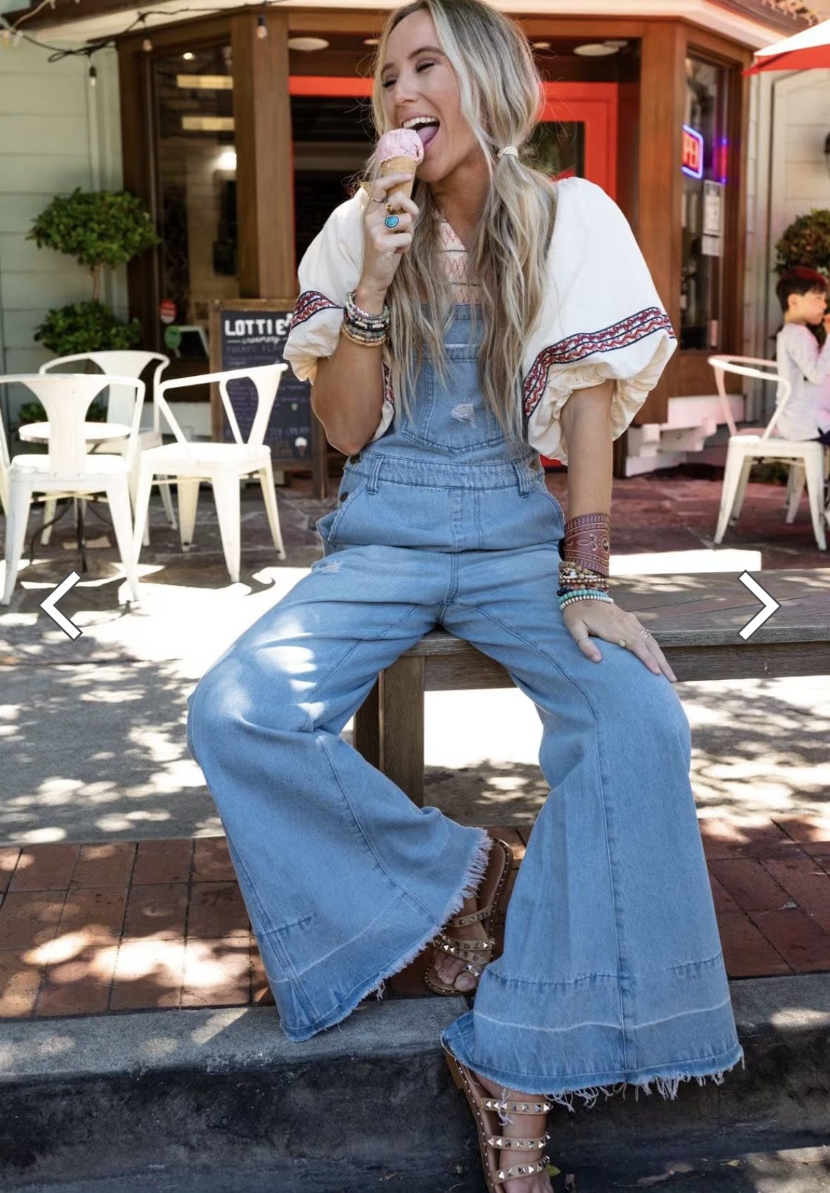 Three Bird Nest Milly Distressed Hem Wide Leg Overall. Denim.Medium. Bell bottom