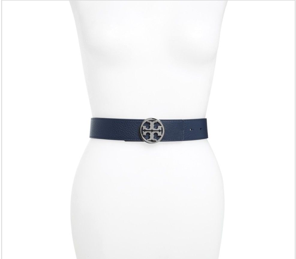 Brand NEW ! Women's Tory Burch Reversible Logo Belt, Size X-Small - Tory Navy/ Pinetree/ Slvr