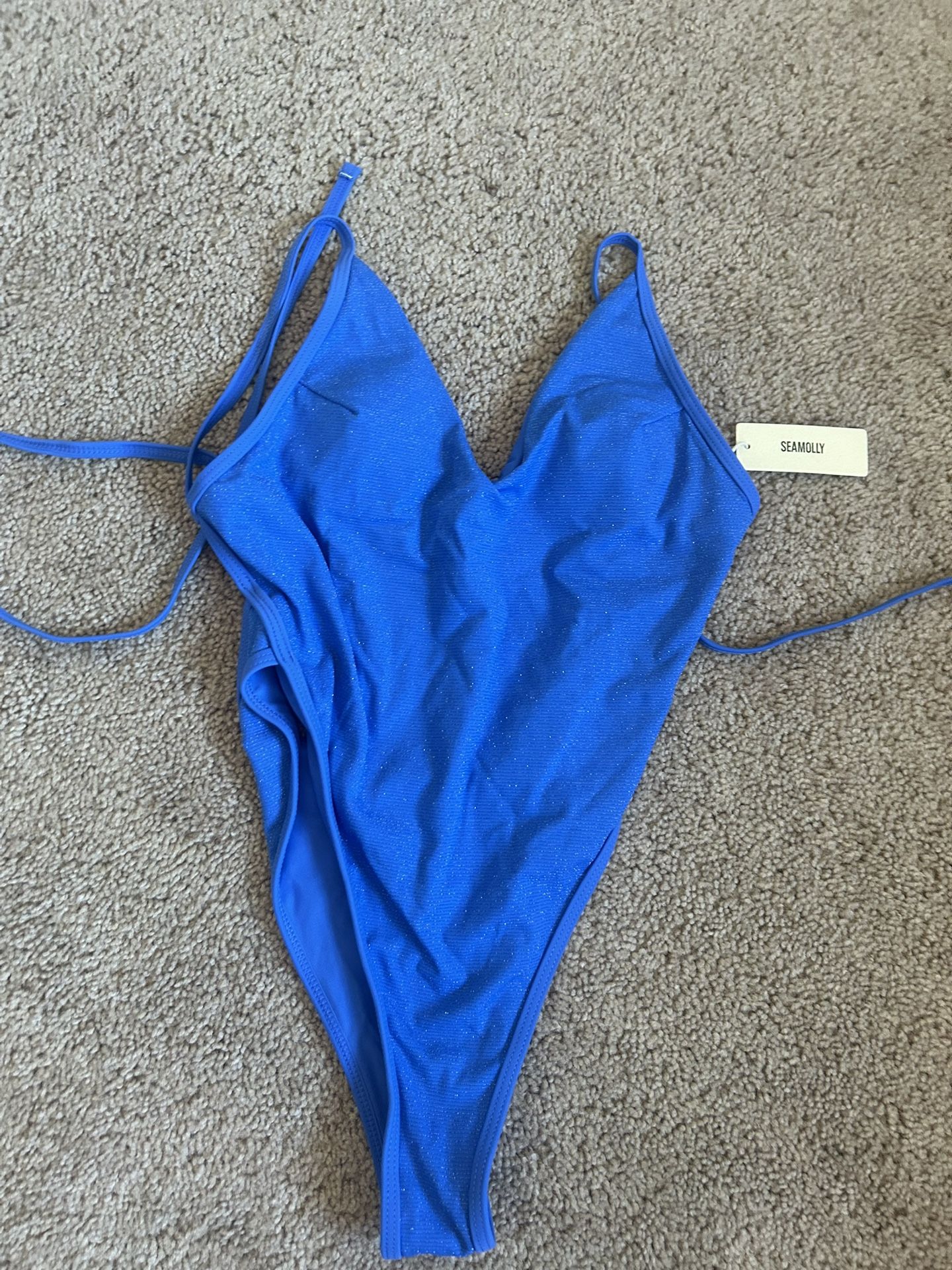 One piece, open back. This is a size extra small and I also have a size small. Both are new never worn. They seem to run a bit small in both sizes. 15 a piece