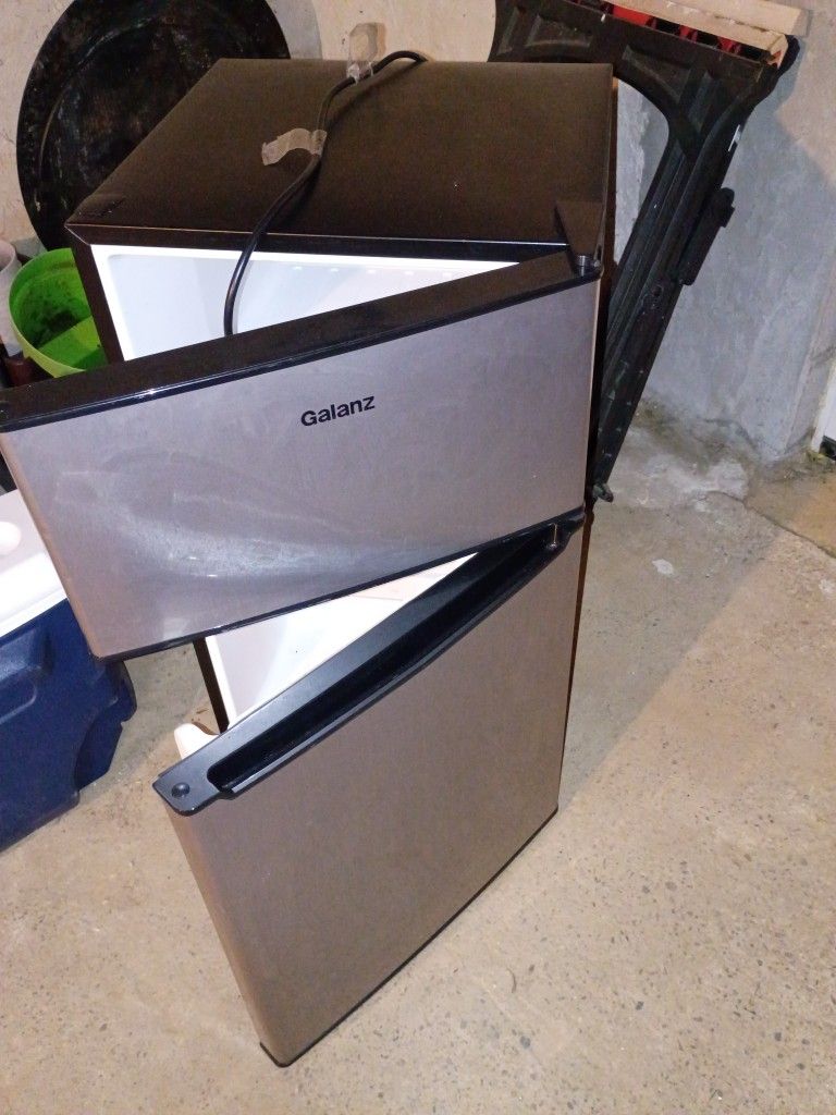 Good condition working galanz Mini fridge and freezer. No longer needed. It works as it should. Cleaned out nothing wrong with it.
