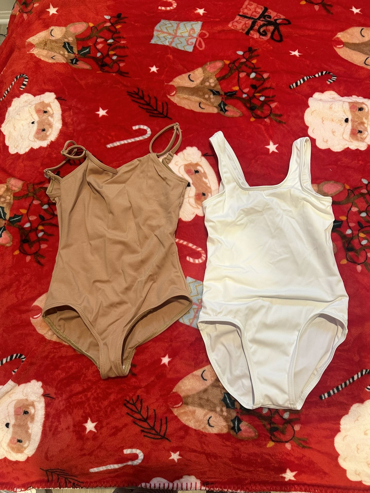 White leotard is weissman intermediate child & tan is Capezio medium child. $10 each