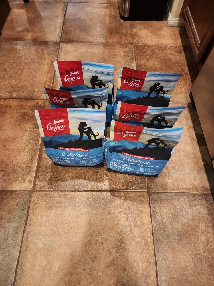 Orijen Original Dog Food Expires May 2026 4.5 lb bags 1/2 off Original Price $20 each bag I have 6 bags If you buy all 6 you can have them for $100 (very good deal)