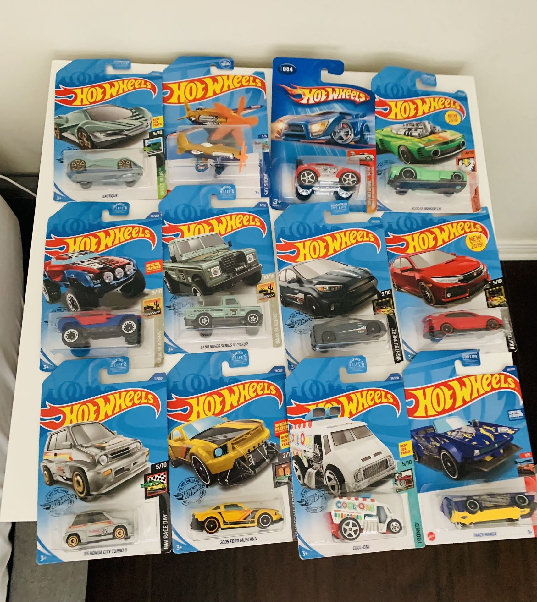 $3 each $24 for all There are 12 cars in total The first hot wheel shown has a small crack near the car’s image