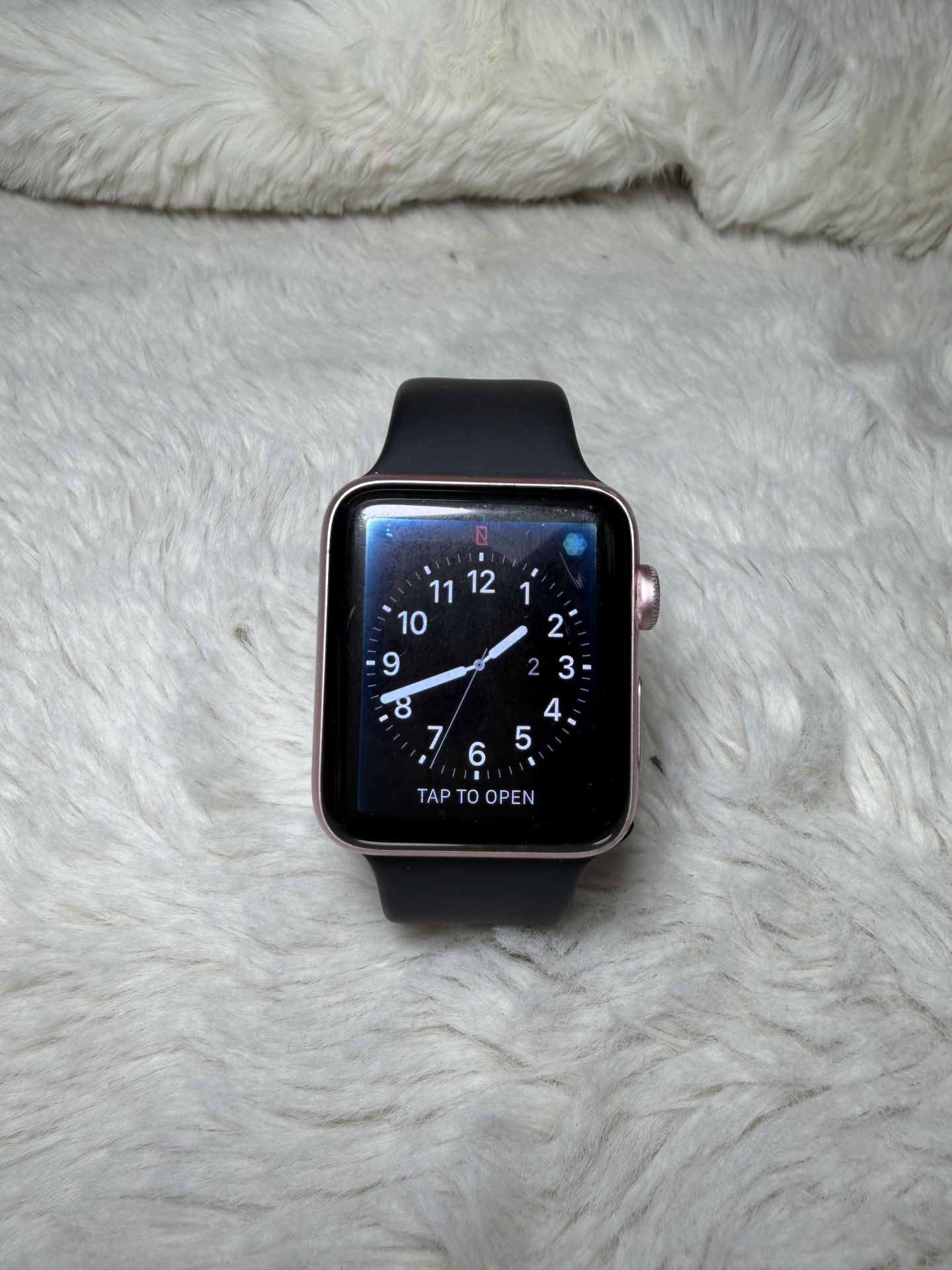 Apple watch Rose Gold series 2 42 mm Gps Watch its in fair shape but fully functional iCloud unlocked. Ready for new owner. Cames with original oem black sport band