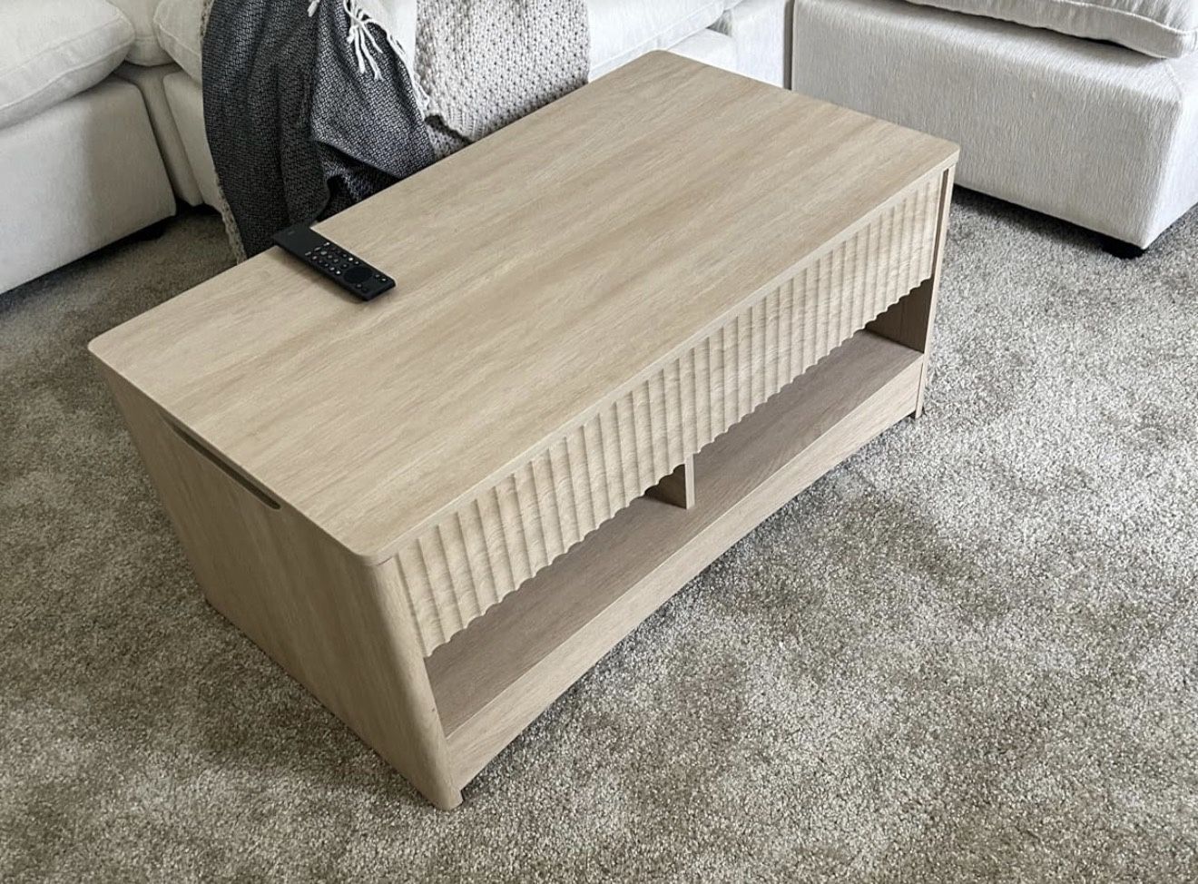 Modern Lift-Top Coffee Table β Excellent Condition β $40 πPICKUP: IRVINE Selling this beautiful modern lift-top coffee table in excellent condition. It has a light wood finish with a stylish fluted front design. β Lift-top feature (great for working or eating) β Hidden internal storage compartment β Bottom open shelf for extra storage β Sturdy and functional β Very clean and well maintained π Dimensions: β’ Length: 35.28 inches β’ Width: 19.56 inches β’ Height: 15.2 inches πͺ Weight capacity: β’ Tabletop (down): 250 lbs β’ Tabletop (raised): 30 lbs β’ Internal storage: 44 lbs β’ Bottom shelf: 44 lbs Everything works perfectly. Only selling because Iβm moving. π° Price: $40 π Pickup only