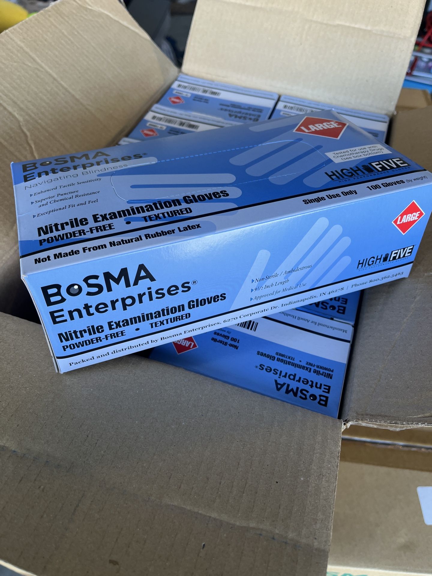 Need to get rid of an extra pallet of Large Nitrile Gloves. $5 for a box of gloves. These are food/ medical grade. 1 box = 100 pairs. Cleaning, maid, mechanic, chemicals, rubber, dental, pharmacy, weed, oil, camping, PPE.