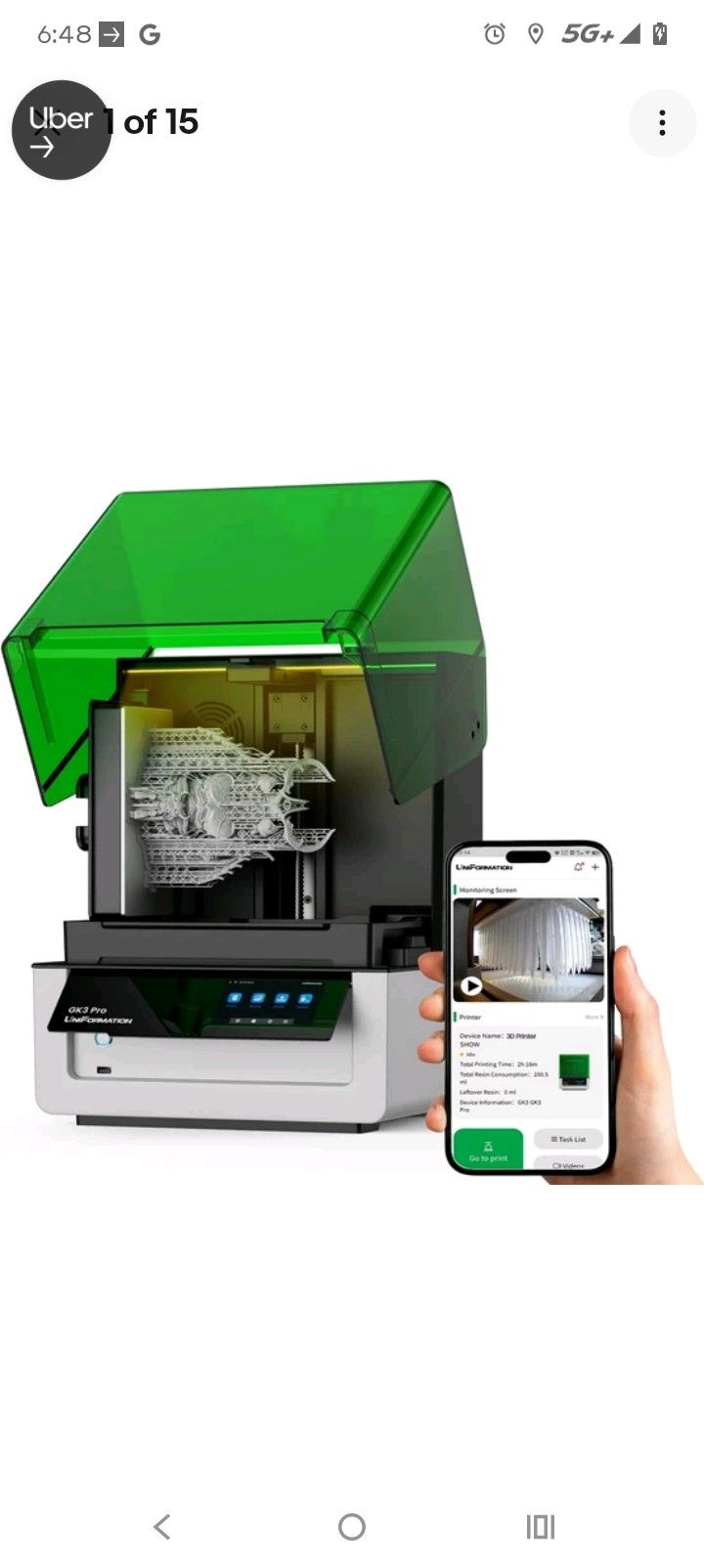 Description: GK3 Pro Resin 3D Printer 16K HD LCD 385nm COB Light Source with Smart Heating System & Smart App Printing & Auto Feeding System 8.3 x 4.7 x 9.5inch Large Build Volume MSRP: 739.99 Condition: NEW Notes: Other info: Features: 【385nm Light Source with Next-Level Printing Performance】 Compared to the common 405nm light source, the 385nm wavelength is shorter, offering lower penetration, reducing light scattering and preventing over-curing, significantly improving printing performance, even printing the transparent 3d models. Ideal for professionals who demand high precision and detail in their models.,【Ultra-Crisp 16K HD Printing Precision】Equipped with a 16K high resolution lcd screen (15120 x 6230 resolution, XY resolution of 14 x 19 μm), GK3PRO resin 3d printer ensures every model with true-to-life textures, smooth surfaces and flawless precision. Besides its spacious 211 x 118 x 240 mm (8.3 x 4.7 x 9.5inch) build volume supports large models or batch printing in a single batch.,【Precision Z-Axis System with Rock-Solid Stability】The resin printer features a 1204 high-precision ball screw and EGH20 heavy-duty linear guide, doubling lifespan over T-screws. Combined with a 3-point fixed structure to composed high-rigidity frame assembly, ensuring smooth and stable Z-Axis movement, it eliminates wobbling, misalignment, or shifting during printing and enables precise replication of each curing layer.,【UniFormation Smart App for Convenient Printing】 With real-time monitoring, you can track progress and resolve issues instantly. Remote control allows you to start or stop printing anytime, anywhere, while multi-printer management lets you connect and oversee several printers. The time-lapse photography feature captures your entire printing journey, and a variety of tools help you achieve smooth, high-quality prints with ease.,【Smart Resin Heating System for Cold Weather Printing】With built-in temperature detection and heating, GK3PRO 3d resin printer maintains ideal resin fluidity even at 5°C/41°F. It reduces curing failure caused by cold, ensuring consistent, high-quality prints every time, no matter the season. Keywords: GK3,Pro,Resin,3D,Printer,16K,HD,LCD,385nm,COB,Light,Source,with,Smart,Heating,System,&,Smart,App,Printing,&,Auto,Feeding,System,8.3,x,4.7,x,9.5inch,Large,Build,Volume Categories: Electronics, Industrial & Scientific, Additive Manufacturing Products, 3D Printers