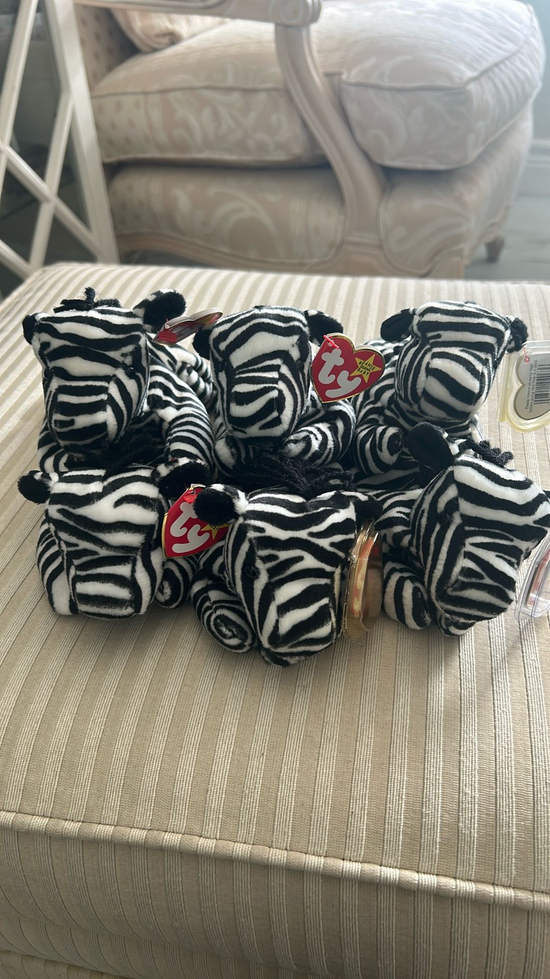 ziggy the zebra. beanie babies, tags are all protected. all have tags. 7 for each or 42 for both. or better offer. need gone asap