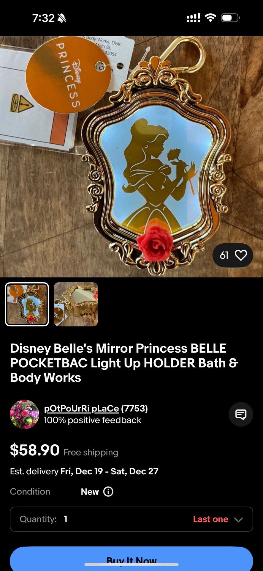 Bath & Body Works X Disney Belle Pocket Back Hand Sanitizer Holder