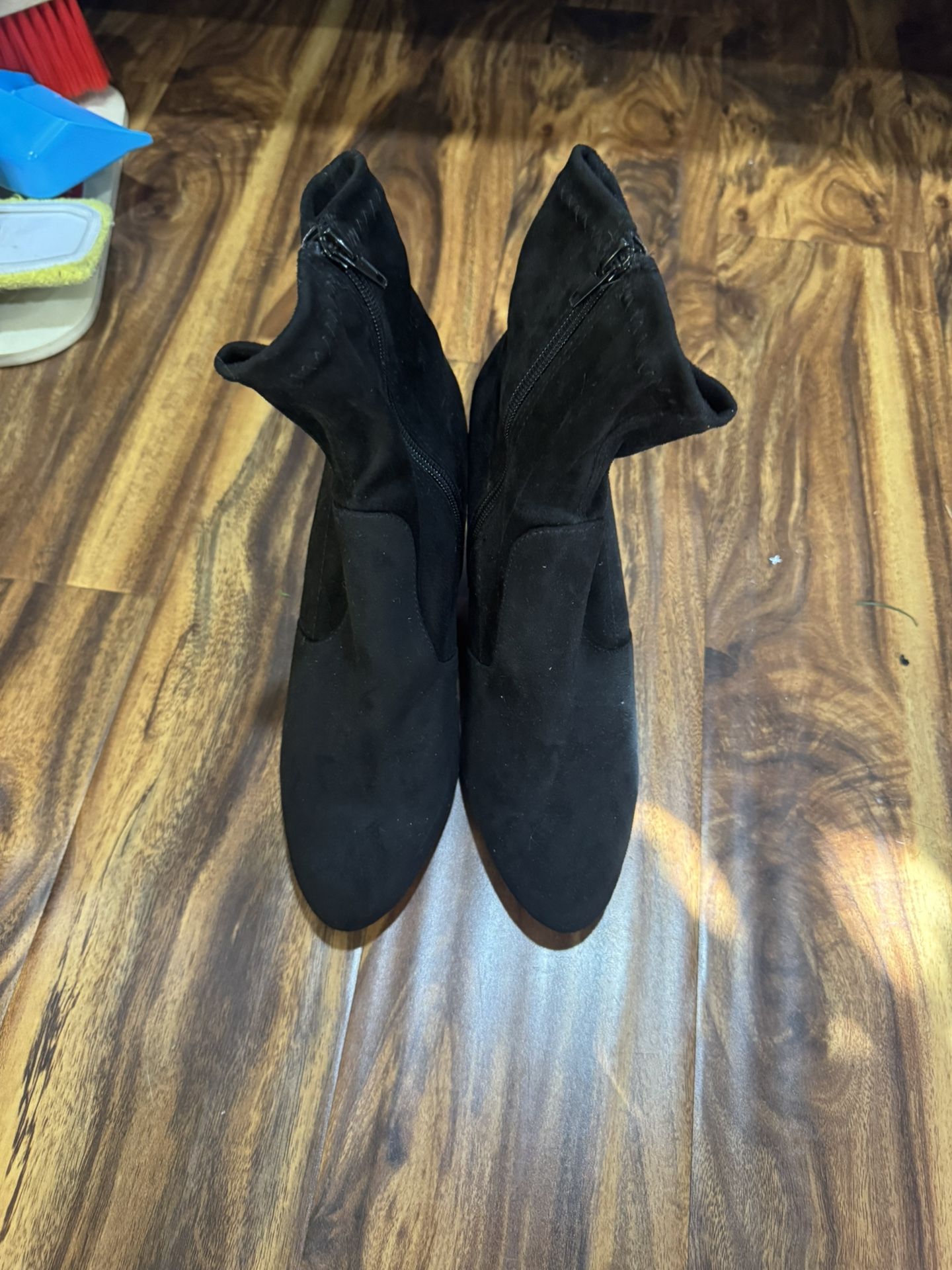 Stylish black ankle boots with side zippers. Size 8.5