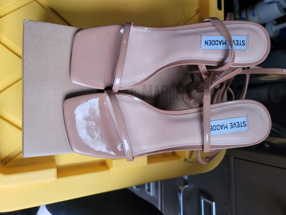 Women's size 8.5. Steve madden uplift camel patent. In really good condition.