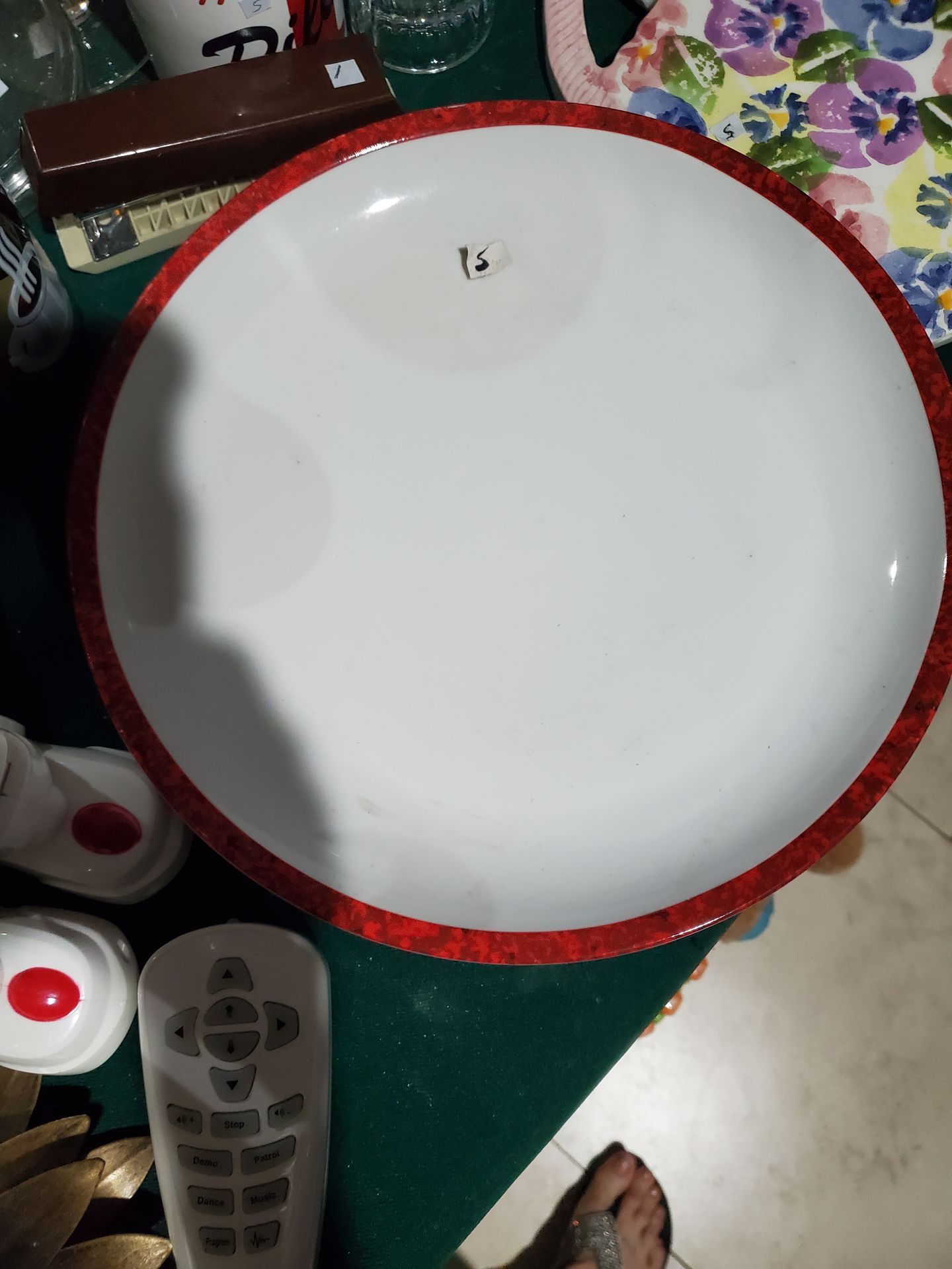 White with red/ gold trim plate made in Hungary Habitat Pattern