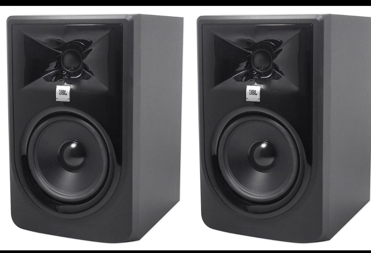 2) JBL 305P MkII 5" 2-Way Active Powered Studio Reference Monitors Speakers